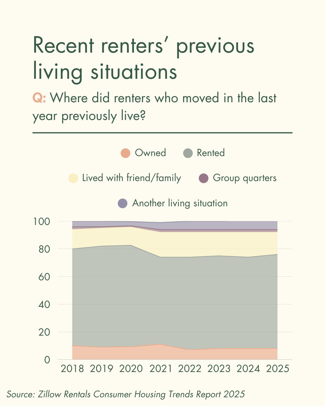 For much of Gen Z, renting is seen as an optional expense, not a necessity, with young people opting out of the market in favor of more affordable alternatives. Since 2020, a large number of new renters have reported previously living with their family or in an alternative living situation, suggesting that the pandemic could have had a sustained effect on young people’s propensity to rent. Multifamily owners are no longer just competing with each other for leases; rather, they’re competing with all of a prospects’ alternative options.